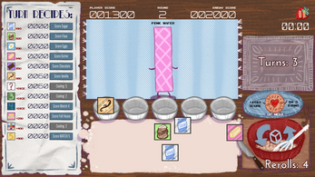 - Move dice into the tins to lock them for scoring. Risk rerolling your dice to get the ingredients you want